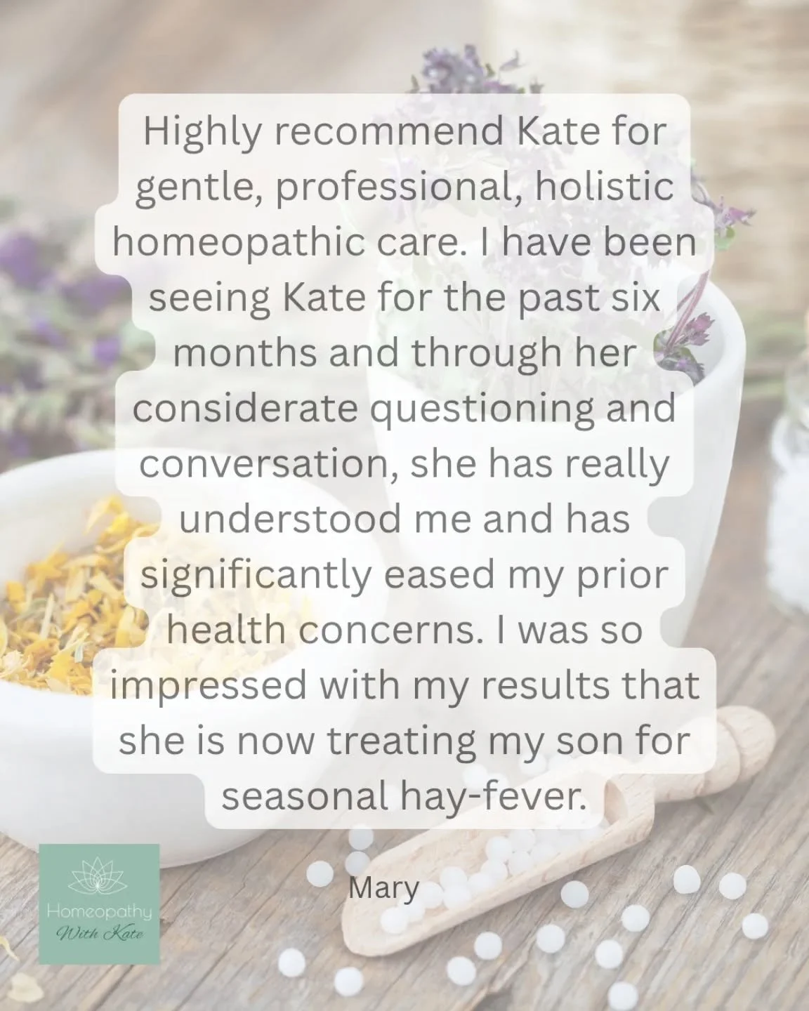 My name is Kate Panayi. I am a homeopath based in South Woodford, London and I offer homeopathic consultations and treatments to people of all ages, via Zoom.